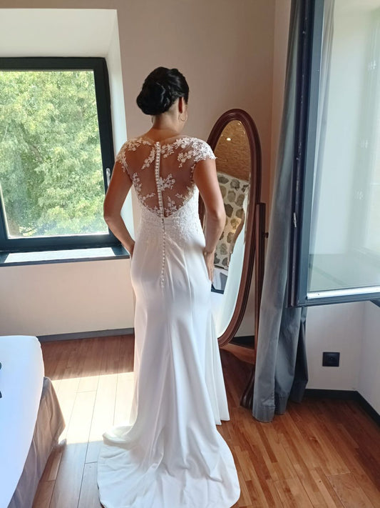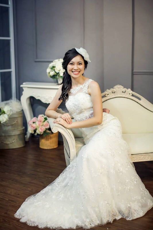 Bride May Yin - Sleeveless illusion lace neckline in trumpet cut with sheer lace back