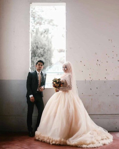 Bride Nazrah - Long Sleeves Drop Waist Ball Gown Wedding Dress