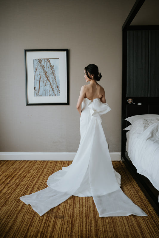 Sophisticated Simplicity: Juliet’s Clean-Cut Gown with a One-of-a-Kind Bow