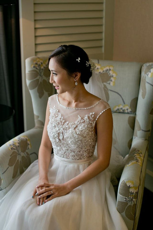 Bride Janice - Cap sleeves sheer bodice organza wedding dress