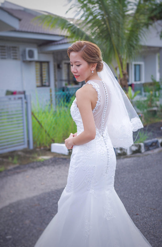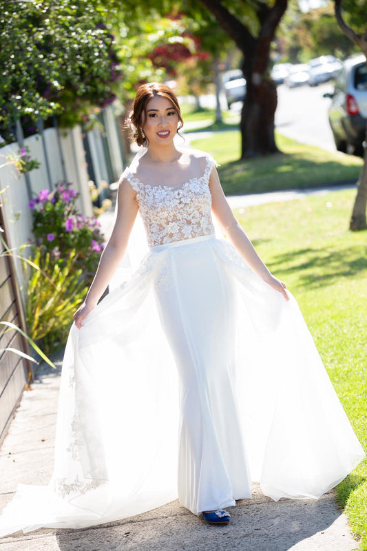 Bride Jane - Cap Sleeves Mermaid Wedding Dress with Detachable Skirt