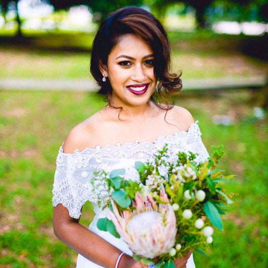Bride Jasmine - Intricate Beadwork Off Shoulder Fit and Flare Wedding Dress