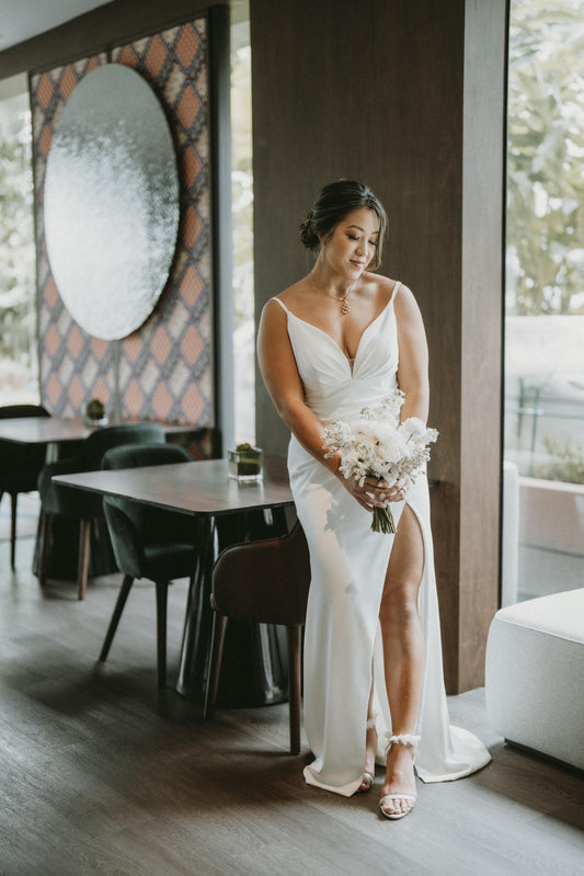 Timeless Beauty: Michelle’s Minimalist Gown in a Stunning Setting