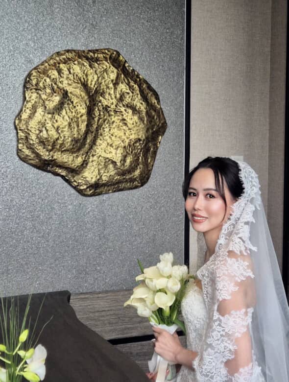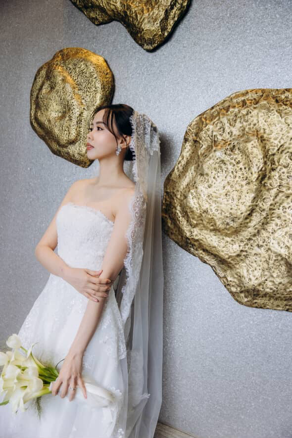 Bride Way Men chose a classic lace design that fits her perfectly. The gown features a flowing full lace skirt, creating a soft, romantic silhouette that complements her elegance. Every detail, from the intricate lace patterns to the tailored fit, was crafted to highlight timeless sophistication. Ideal for brides seeking a refined, versatile bridal look, this gown embodies both grace and understated luxury.